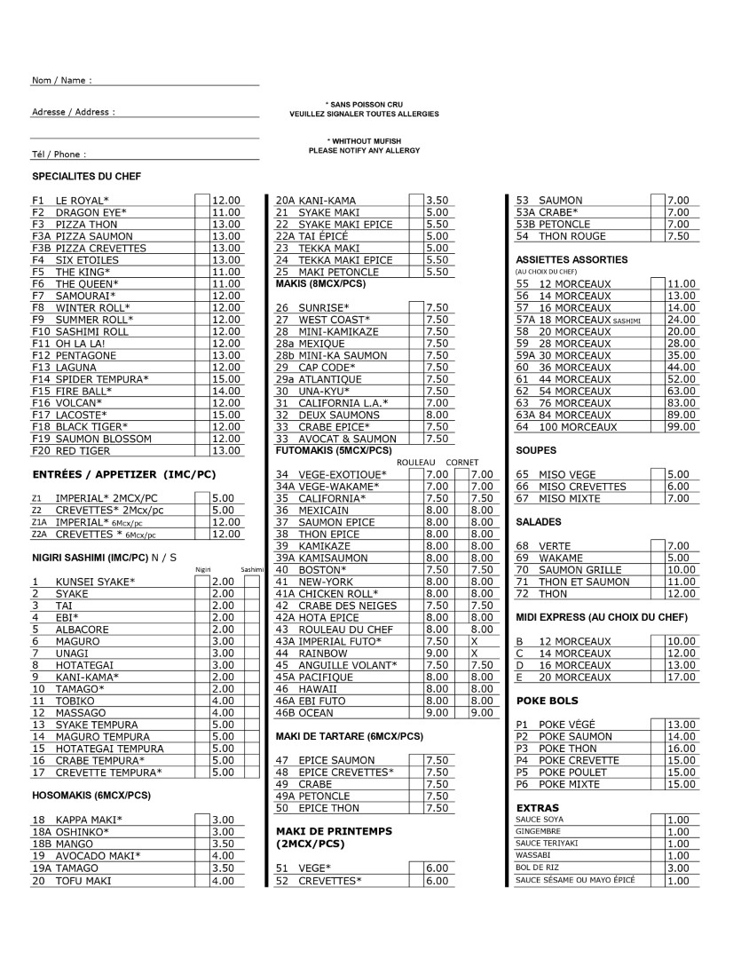 Menu Royal Sushi