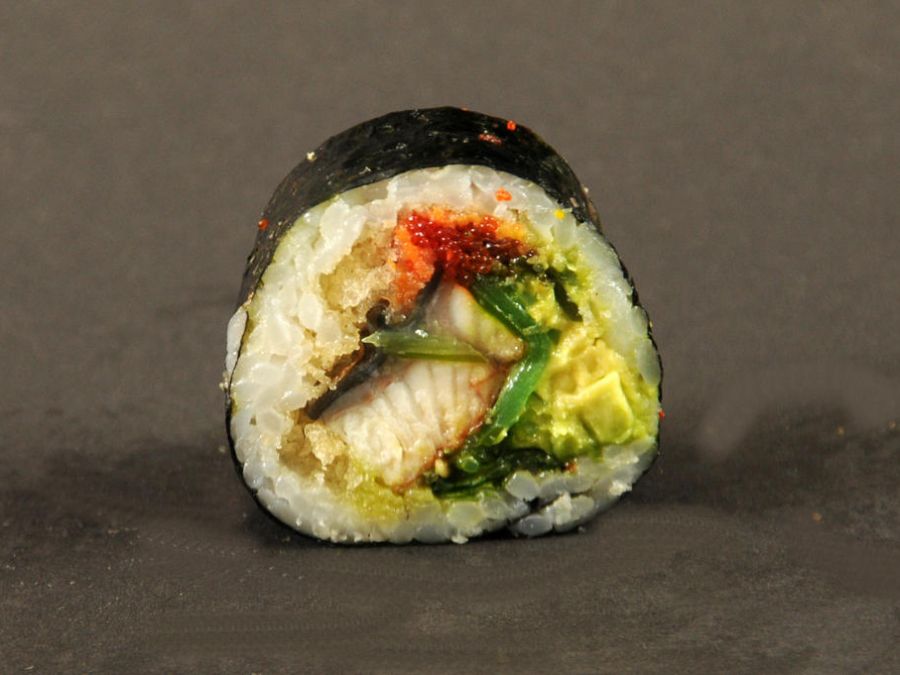 anguille grillé, caviar, wakamé, tempura , laitue, avocat. (Plus)